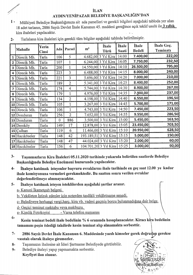 18 Tarla İhalesi