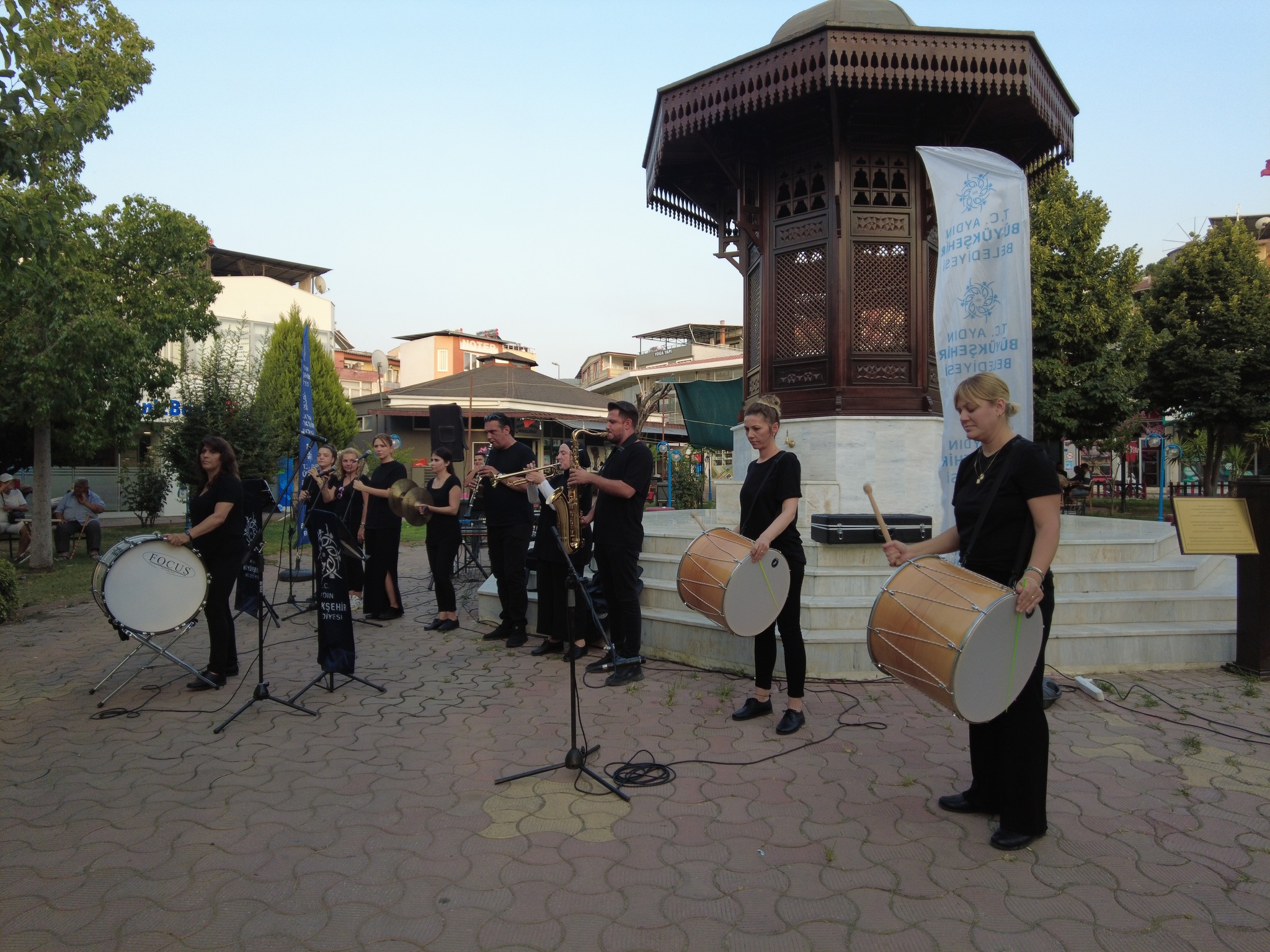Aydın Büyükşehir Belediyesi Kadın Mehteran Takımı, İlçemiz Yörük Ali Efe Parkında konser verdi. Belediye Başkanımız Yüsran Erden ve Yenipazarlı vatandaşlar, gün batımının serinliğinde, ağaçların gölgesinde konseri dinlediler. Başkanımız, bu güzel etkinlik için Aydın Büyükşehir Belediye Başkanı Özlem Çerçioğlu’na ve ekibine teşekkür etti.