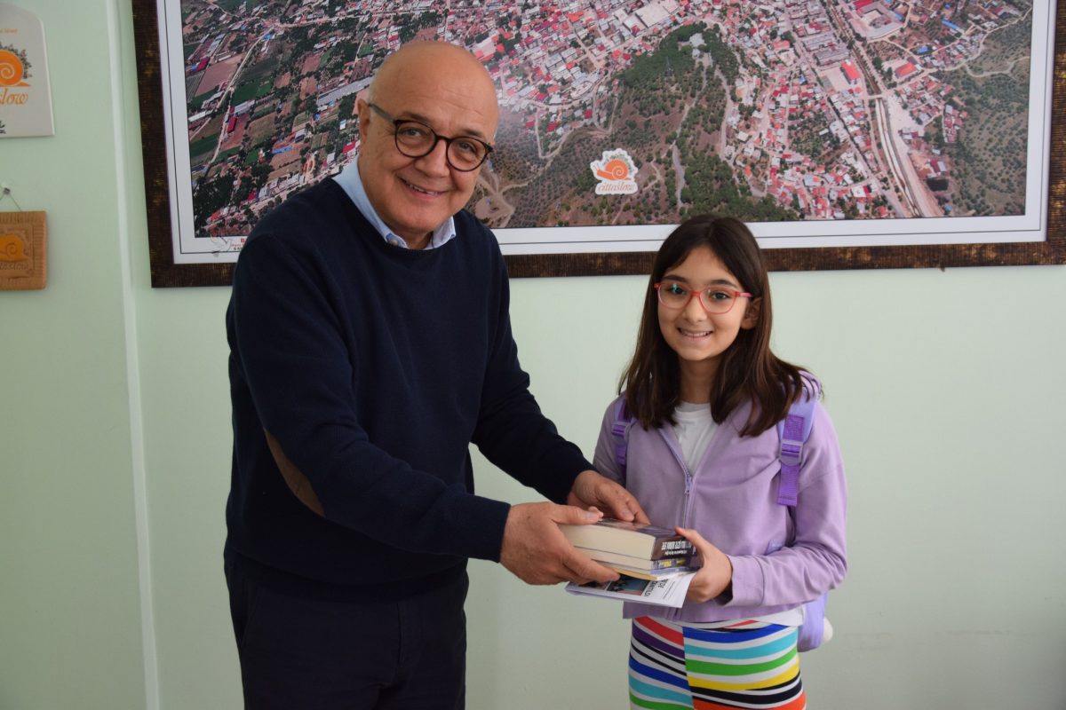 Başkanımız, ödevi için kendisi ile söyleşi yapan Zeynep’e “sakin şehir” felsefesini anlattı. Zeynep’in ‘Düzenlediğiniz etkinlikler var mı’ sorusuna ise ’30 Nisan’da bisiklet şenliğimiz var, seni de bekliyorum’ diyen Başkanımız, yapılan etkinlikleri ve planlanan çalışmalarını sıraladı. Başkanımız, Zeynep’e Belediyemizin Aylık Haber Bülteni olan Zeybek’in yanı sıra hikaye kitapları hediye etti.