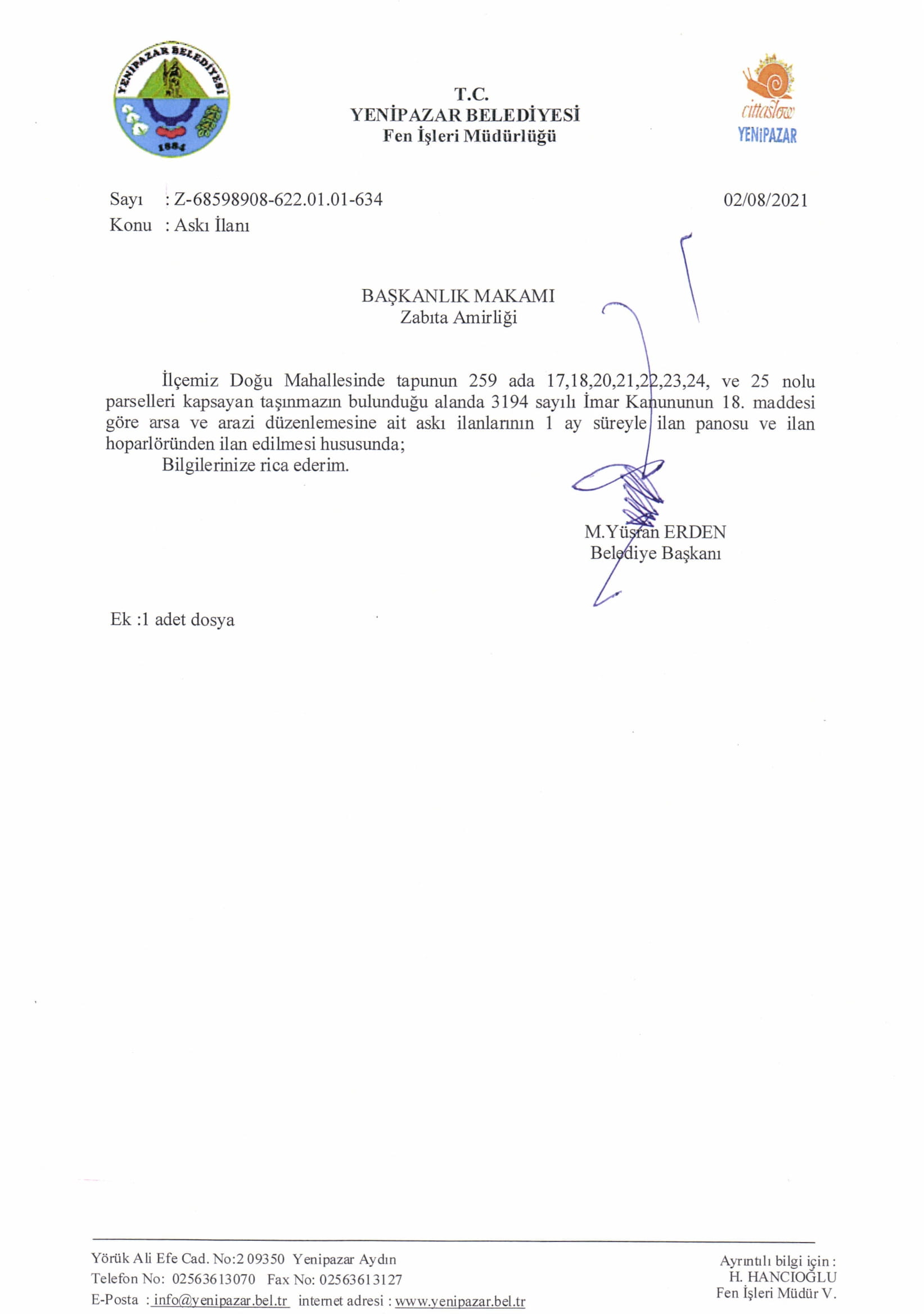 DOĞU MAH. 259 ADA 18. MADDE UYGULAMASI İLANI