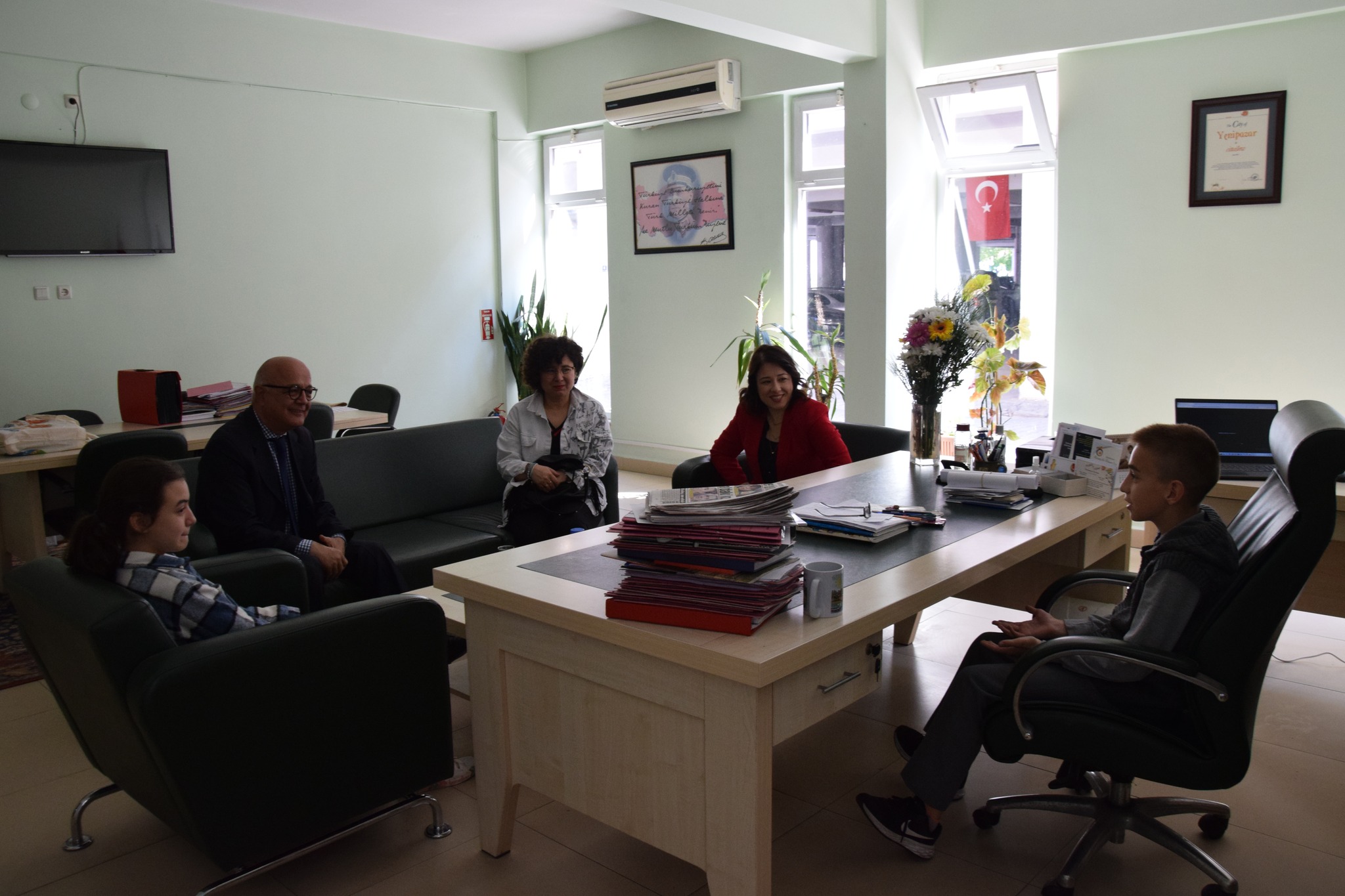 Belediye Başkanımız Yüsran Erden, 23 Nisan Ulusal Egemenlik ve Çocuk Bayramı nedeniyle Merkez Ortaokulu 6. sınıf öğrencileri Pınar Fidan ve Buğrahan Aksoy’u makamında ağırladı. Başkanımız, koltuğunu Pınar ve Buğrahan’a devretti.