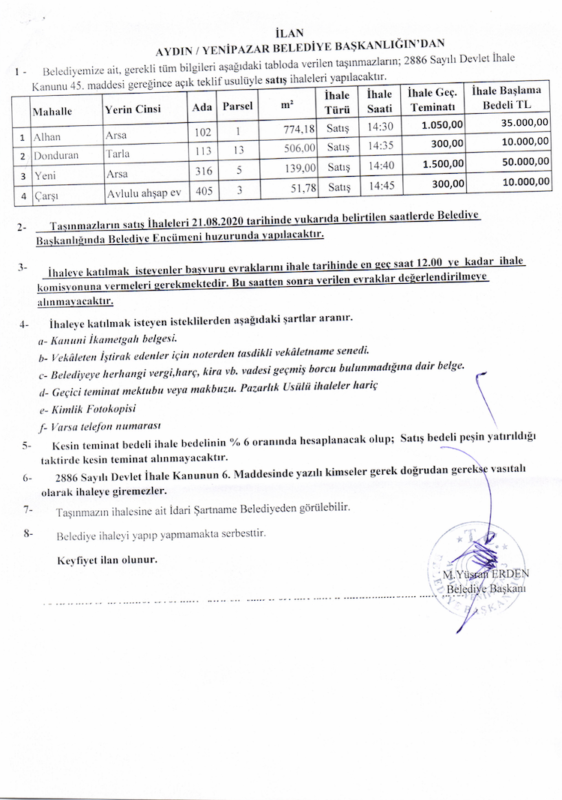 DuyurularYENİPAZAR BELEDİYESİ TAŞINMAZ SATIŞ İLANIYenipazar Belediyesi taşınmaz satış ilanı ile ilgili detaylar aşağıdaki görselde yer almaktadır.